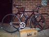 This was my general-purpose fixed gear work bike for a long time, and had been my "fast bike" for a little while before that. It saw more builds than I can remember properly.