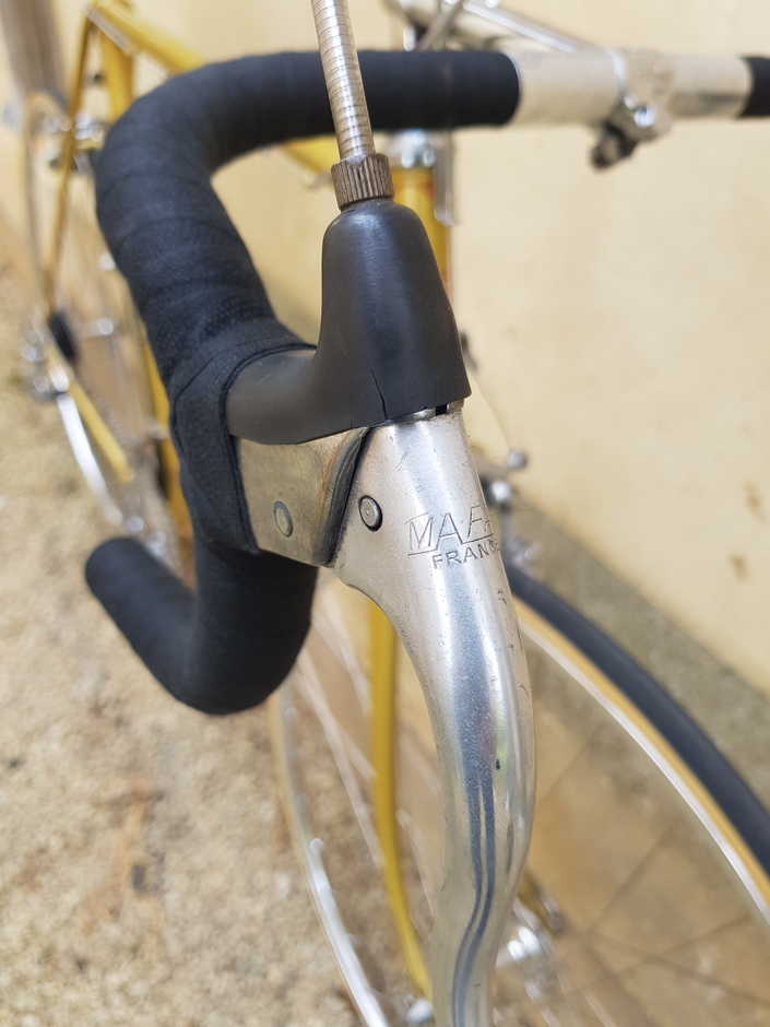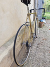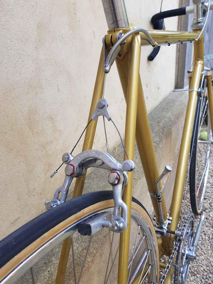 It weighs 10.4Kg without pedals. Pretty light given the weight of the steel BB and crank set! This gorgeous bike was born the same year I was but is looking rather less worn!