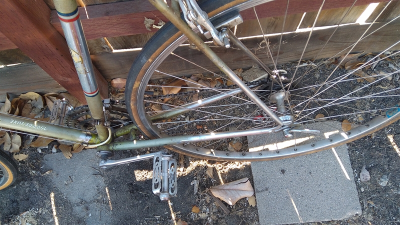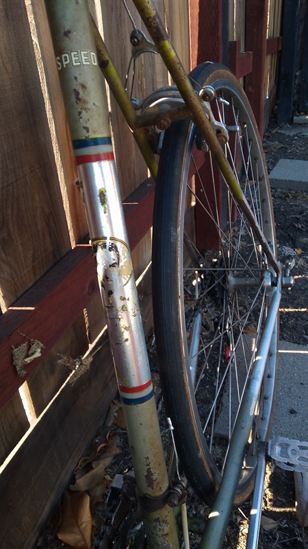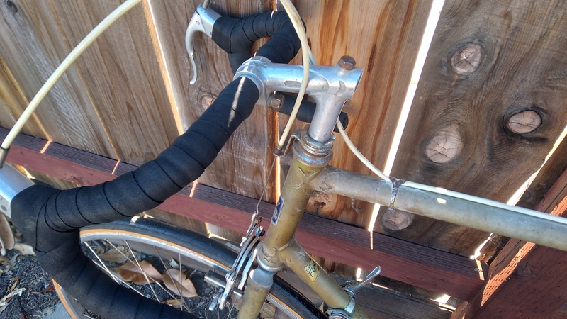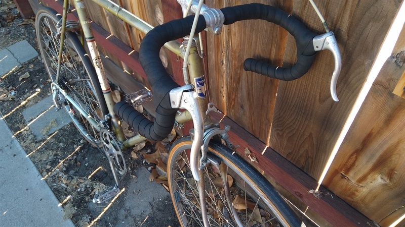 This bike has seen better days. A total restoration may be in order but then it would no longer be original. I decided to preserve it as is and ,after cleanup, replaced any missing or broken parts. New bar tape.