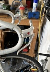 Purchased during trip to Chicago. Had an undersized seat post and old saddle. Used a stem to open the seat lug to 27.2 mm. Fitted with proper Campagnolo seat post and Brooks Saddle. Frame has lots of "Patina" will keep it as found. Replacing the wheelset and fitting proper red dot Weinmann brake levers. D serial number dates it to 1969.