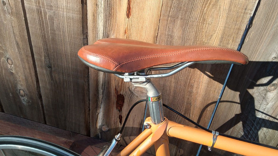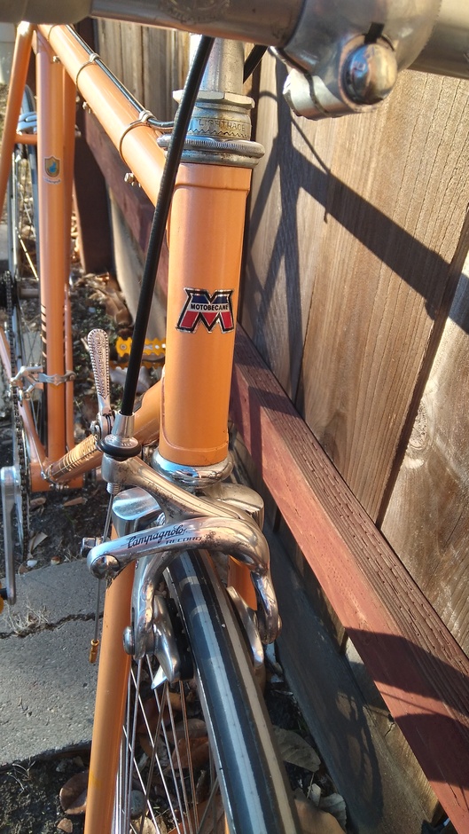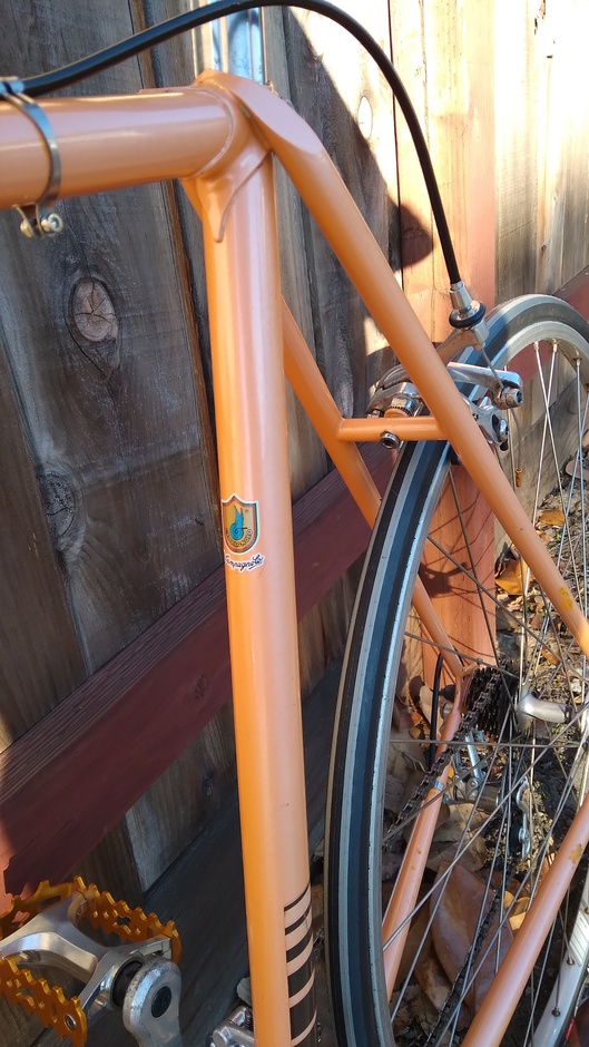 Bought this bare frame for cheap and built it with Campagnolo parts. Catalog correct parts have been tough to find.