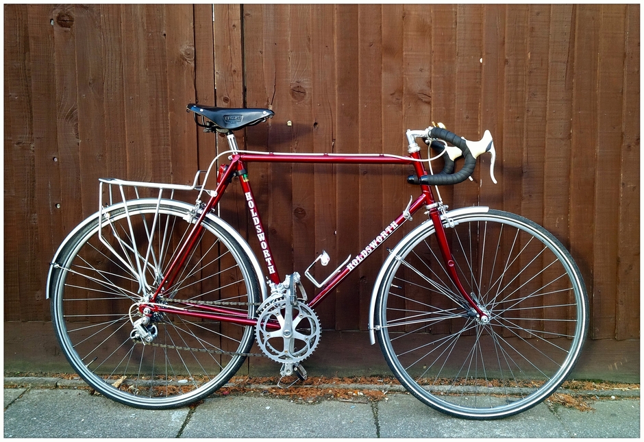 Ping bell, Christophe steel toe clips and leather straps, Allez! pump, Elite Ciussi Gel Bottle cage silver, silver rear rack