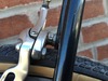 My do it all bike, picked it up for $80 bone stock on Craigslist with a fat dent in the seat tube. Luckily, ramming the seatpost all the way down took most of the dent out. I had problems with the rear caliper rubbing on the big 32c tire, so I made a tapered washer that angles the caliper away from the tire, giving decent clearance now. Also the front rack bracket took some work to make it fit with the brake. I'm planning on swapping over a 110 bcd crank from my Bridgestone 400 so I can run a 36t inner chainring, then I'm calling it doneski. Oh and a brooks b17