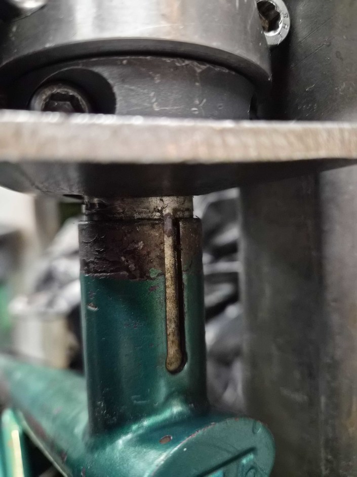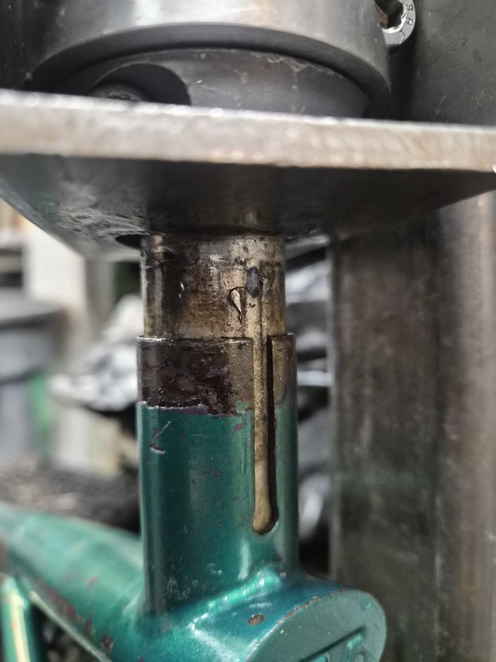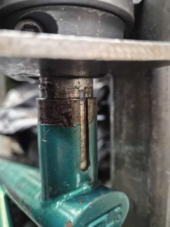 Received this bike frame from a customer saying they didn't have any use of it. Came from them with a seized seat post that had another seat post jammed into the original alloy seat post as a "quick fix". Used a medieval torture device to extract said seized seat post.