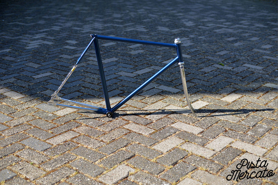 Eddy Merckx trackframe. In very good condition. Chrome is in fantastic condition. Columbus cromor tubing. Small dent on the chainstay drive side. (photo with a arrow pointing towards the dent) . . 52cm center center. 53,5cm center top. 53cm top tube.