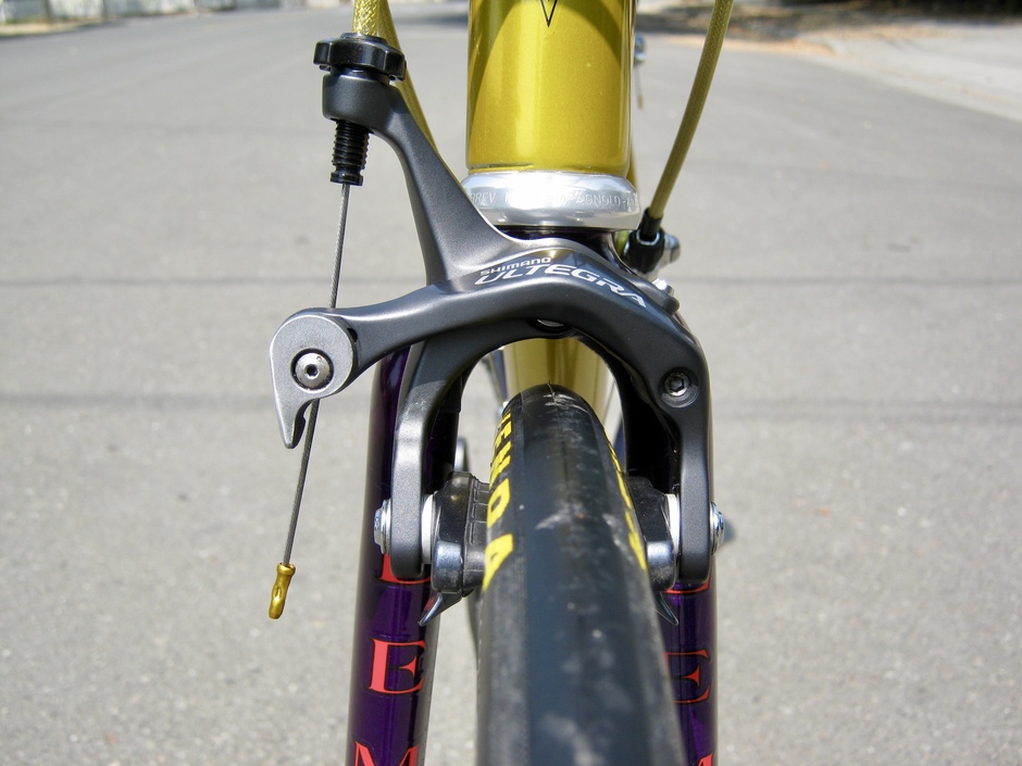 VERY FEW WERE PRODUCED IN THE GOLD LEAF / PURPLE FADE IN 1997 ONLY. MOST WERE JERSEY YELLOW WITH THE FADE. THIS BEAUTY HAS BEEN GARAGE KEPT & WELL TAKE CARE OF. THIS WEEK SHE RECEIVED A FULL RETRO REFITT. RECEIVEING A QUILL ADAPTOR PAIRED TO A EASTO AE50 STEM& MATCHING BAR SET ALL UP TO DATE DRIVETRAIN & WHEELS JAGWIRE RIPCORD GOLD WEAVE CABLE SET TOPPED OFF WITH A CARBON WEAVE BAR TAPE & A SILICONE GRIP SURFACE. SHE IS NOW SPORTING A ULTEGRA 2 X 10 GROUP SET WITH A COMPACT CRANK & A 11/27 CASSETTE ALONG WITH ULTEGRA BRAKES PAIRED WITH A SET OF NEW AMERICAN CLASIC SPRINT-350 WHEELS