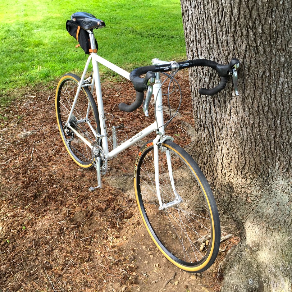 A bike I had built by the legendary frame builder, Dale Saso. Inspired by the sport touring bikes of the 80s, I wanted a bike that both fits me well and rides fast in the hills and mountains around me, but comfortable, as the mountain roads can get rough. A bike that I don't have to dismount in complete pain, yet stays with the pack. Dale did it. Finished off with some custom wheels. Due to my love of steep mountains, but dealing with a bad knee, I went with a triple crank and Deore rear so I can continue to ride up there.