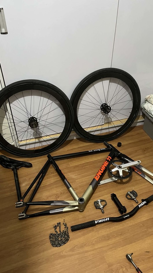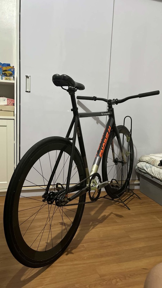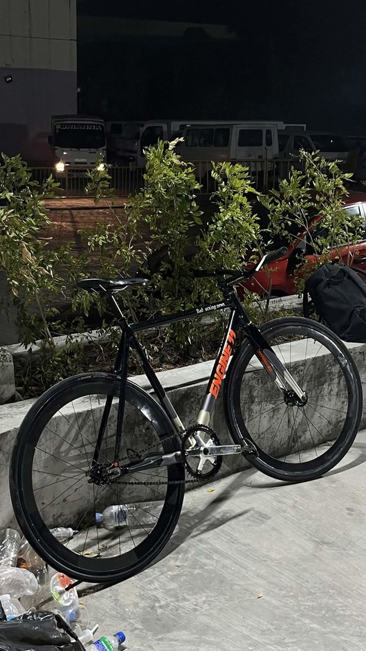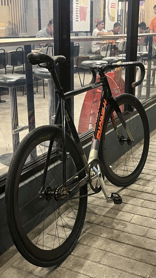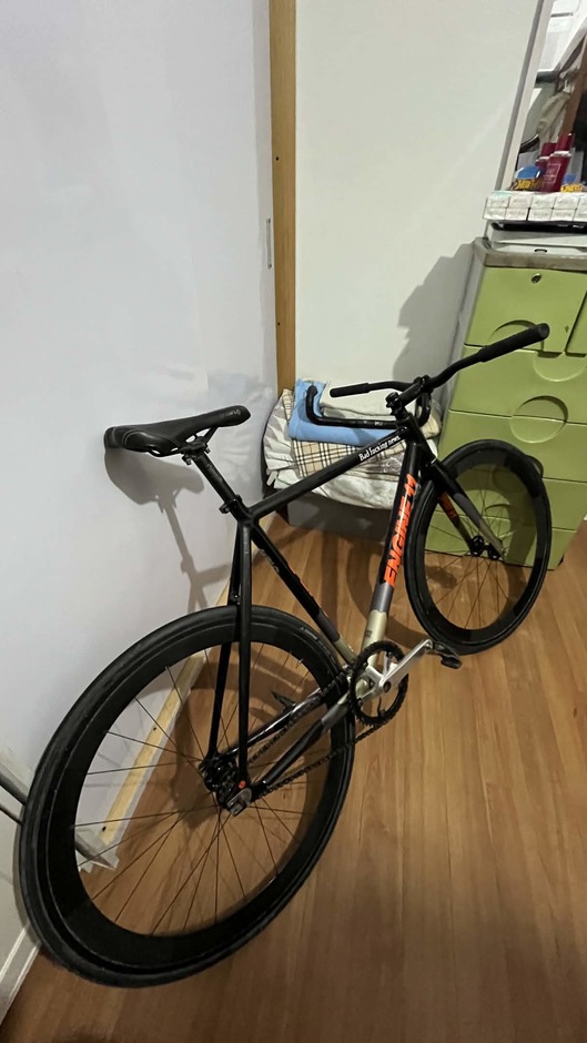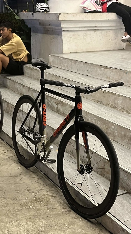 My daily beater, Black/Orange colorway, Had this bike for 2 years at time of writing, supposedly imported from Korea, was going more of a NY / Messenger style, but working on getting some cages, and a different crankset