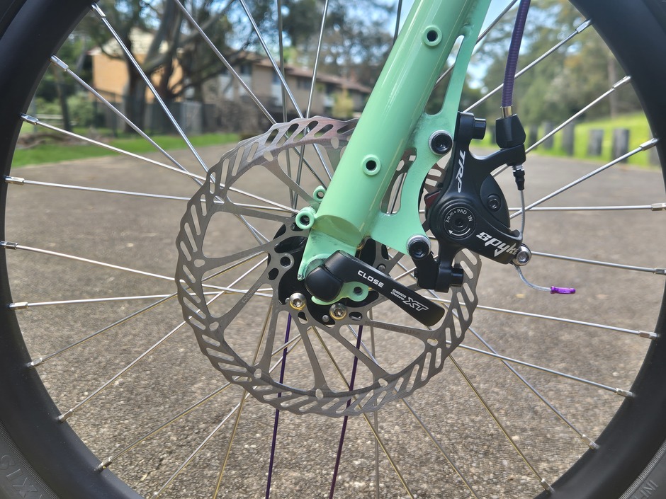 TRP Spyke / Sram Avid 160mm Rotor / Nissen Mesh Outer Brake Cable / Sram Avid V-Brake
