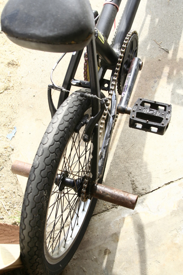 This bike was made on a drunken whim. took 1 night to make the frame, and a few weeks to put it together with old parts from about 10 riders