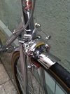 NOS Schwinn approved Dia Compe center pulls. Found a guy on ebay who bought hundreds of these when schwinn closed it's doors in 2001. I was happy to find the orange pads, they match the head badge perfectly!