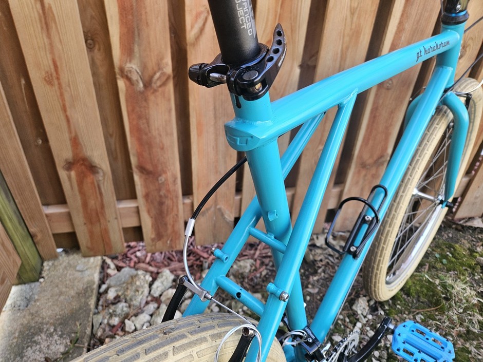 Thanks. I've found that the engine block paints are more durable than other types of paint (likely due to their high heat resistance). I also like most of the engine block colors (light blues, turquoise, etc.). My other mountain bike was also painted with an engine block paint: a dark pewter gray.