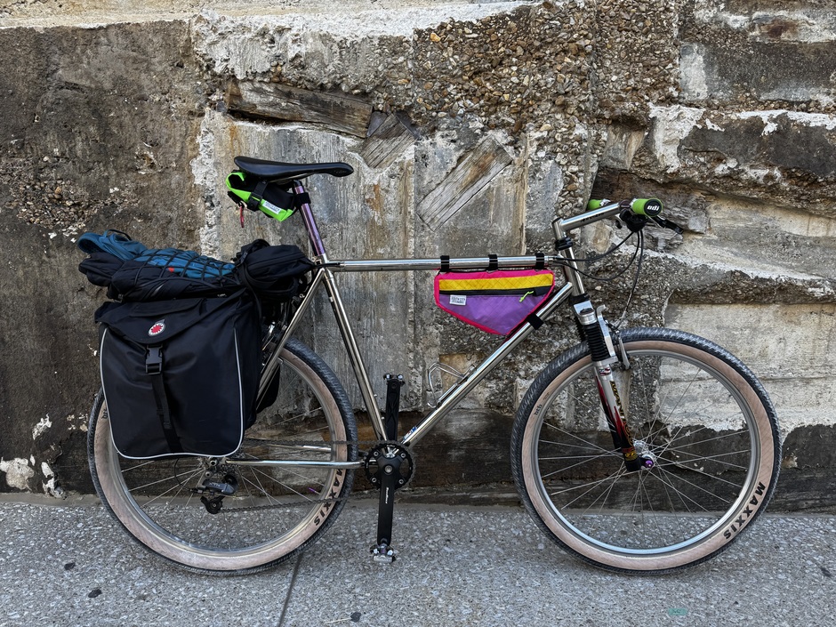 South City Stitchworks frame pack and saddle bag, Axiom Seymour Pannier(don’t buy they suck).