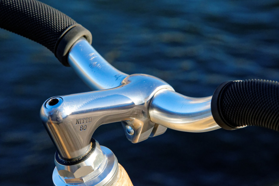 Homemade in Paris by a friend who study design in Switzerland. This frame was his second version of a number of four. The head tube is fully made in carbon and the dropouts were laser engrave. Bottom bracket is a bit too high compare to the hubs. Fun ride tho.