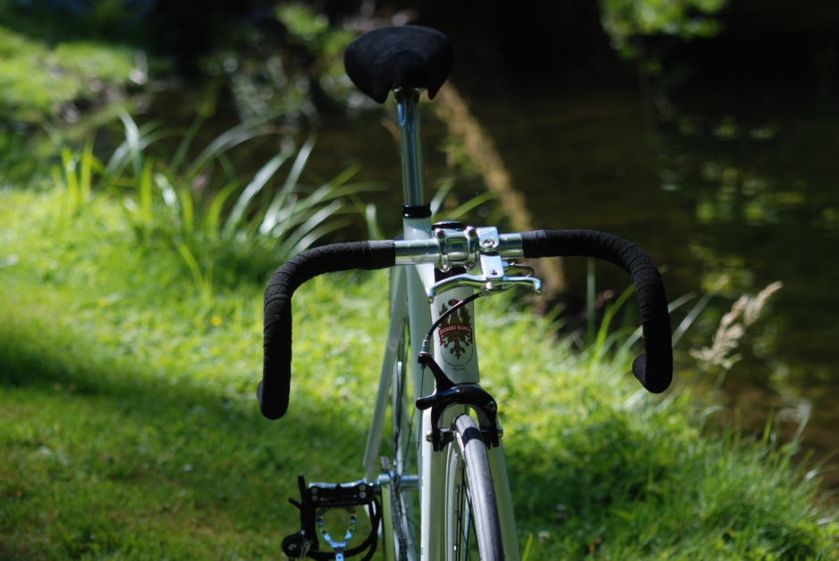 Bike looks great! I've always wanted a super-pista. Those Hoopla's are actually great wheels and pretty cheap (I had a set a while back and was really impressed).