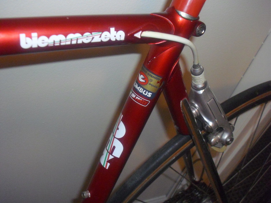 Frame by Italian Bike Builder Biemmezeta is the most awesome road bike I`ve ever owned or tested with fantastic acceleration, quick handling and great response. The bikes frame is built to a short wheelbase (ca 93 cm) and steep angles. Biemmezeta has an indented seat tube to make the rear wheel placed as much forward in the frame as possible. The idea is that the back wheel will follow the front wheel closer and make the bike react much quicker. The angles make this bike scary fast & tight. Definitely a Thoroughbred & will put any good rider on the winners Podium on any given day.