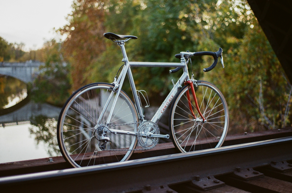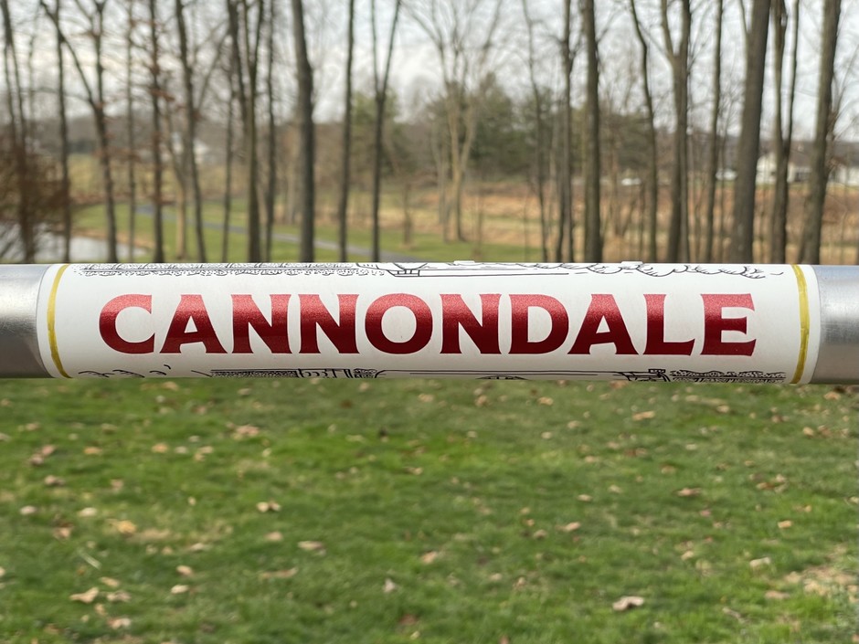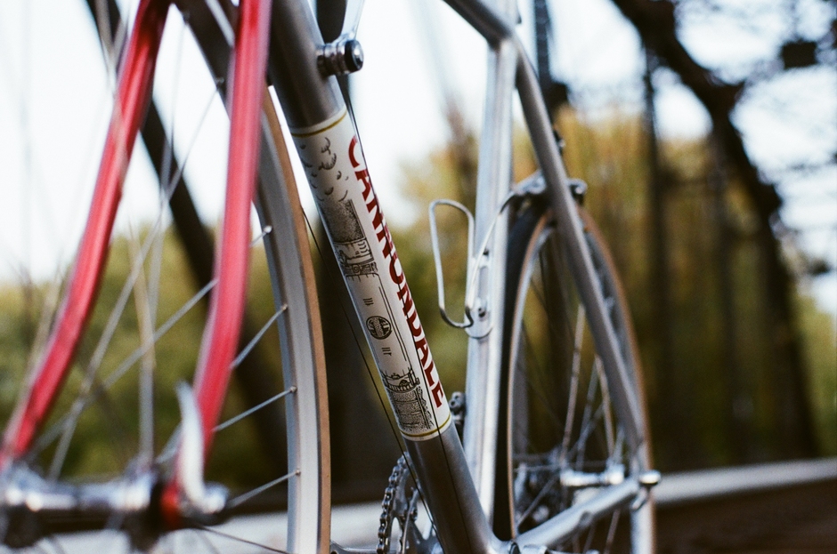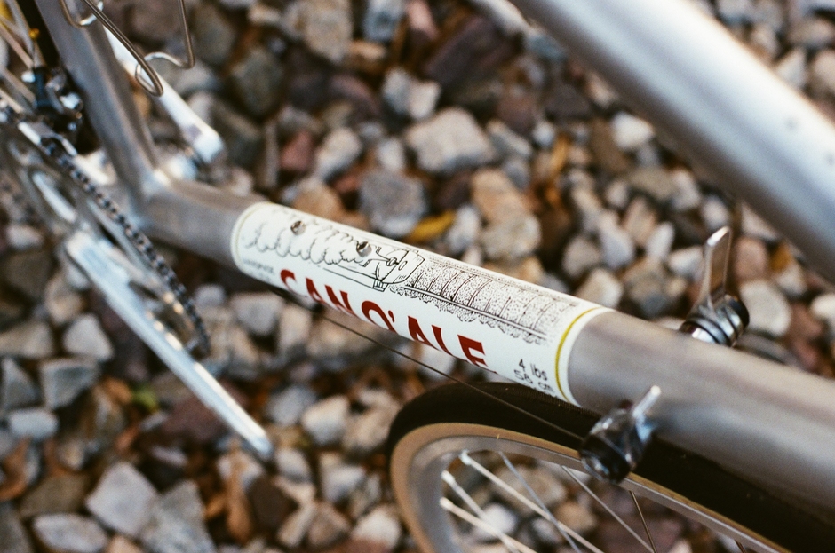The concept for this bike came together flawlessly in my head quite quickly. I loved the idea of calling it the "Can O' Ale", because you only had to take a few letters out, and old Cannondale bikes are famously just aluminum cans. From there, the beer theme came together, allowing me to take inspiration from both vintage and modern beer can design, to allow me to paint the frame with minimal and illustrative labels, similar to that of a beer can. I also took inspiration from NJS track bikes, this thing handles like one. The paint - I wanted to paint sections of this bike to resemble a beer can. Inspired by vintage and contemporary beer can design, I came up with a concept, starting with the headtube, which drew inspiration from Cannondale's original headtube featuring Cannondale station. I interpreted that original logo with a more realistic, illustrative twist, also considering how it would look as a beer can label. I carried the theme to the painted label wrapped around the downtube, drawing a streamliner locomotive (which I felt represented a raw alu Cannondale quite well) on the top, with the back portion of the train on the bottom. The right side reads "Can O' Ale", with written details, and the left just says Cannondale. The build came together quite easily, focusing on aesthetics, ride quality, and budget. Everything metal, for the most part, had to be silver. I knew I wanted to lean into the quick, tactile nature of the bike's riding characteristics. And I tried to build it with all loose ball bearings and as many American and Japanese manufactured parts as possible. Some parts are very modern in shape, such as the handlebars, yet other parts, like the cranks, are clearly vintage. I think it all marries together seamlessly. The result is everything I dreamed it would be. I spent well over a year dreaming of how this would come together, months painting it for my senior thesis exhibition in art school, and months gathering parts for the final build. I can't explain the feeling I get when I look at this bike as a completed project, but I can say it rides fast, nimble, tactile, smoothish, and handles like a scared cat on carpet.