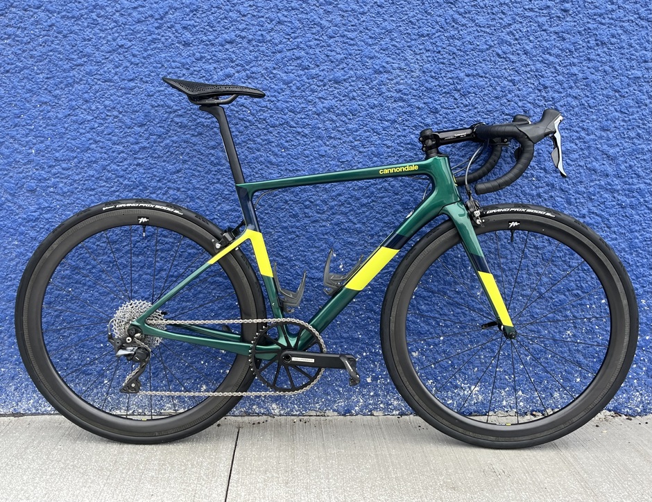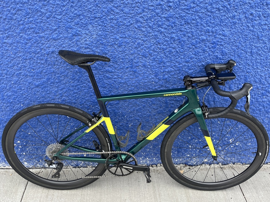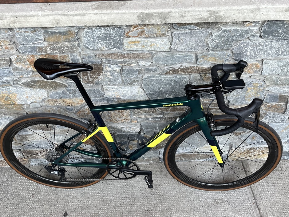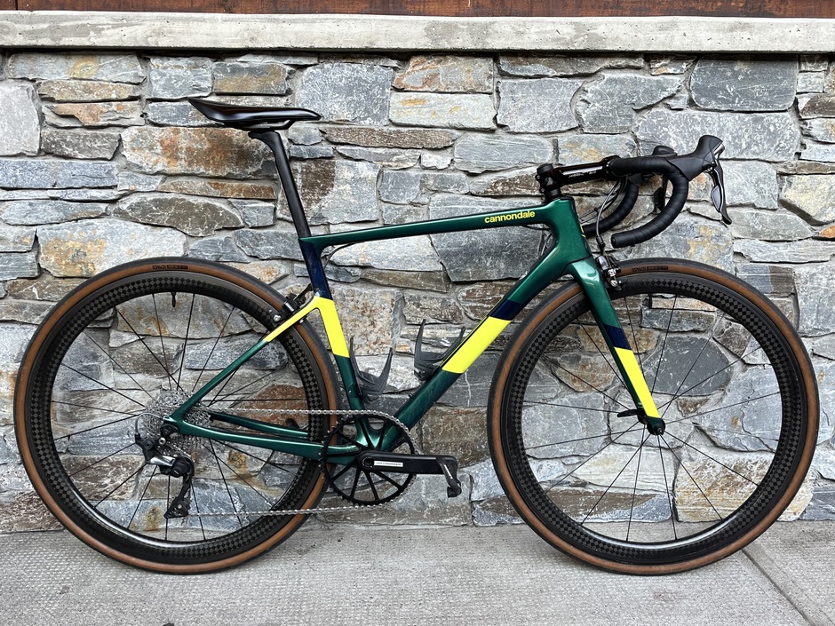 This is a parts bin bike cobbled together from the goodwill of my friends and coworkers. Somehow it all comes together to be a surprising capable and fun to ride machine. The frameset is a model year 2020, the last year the supersix had a rim brake option. It’s maybe a size too small, but the price was free, so I couldn’t turn it down. The shifters were a gift from a customer at the bike shop. The left one is completely worn out, so it necessitated a 1x build. After banging my head against gear ratio calculator, and with the encouragement of my coworkers, I decided on a 50t chainring with an 11-36 cassette. I’ve been pleased with how versatile and tight the gearing feels overall. A massive shout out to Matt and Ryan, two friends and coworkers who supported and encouraged me with this build. This is my favourite and most ridden bike this year by a considerable margin and it’s all thanks to them.