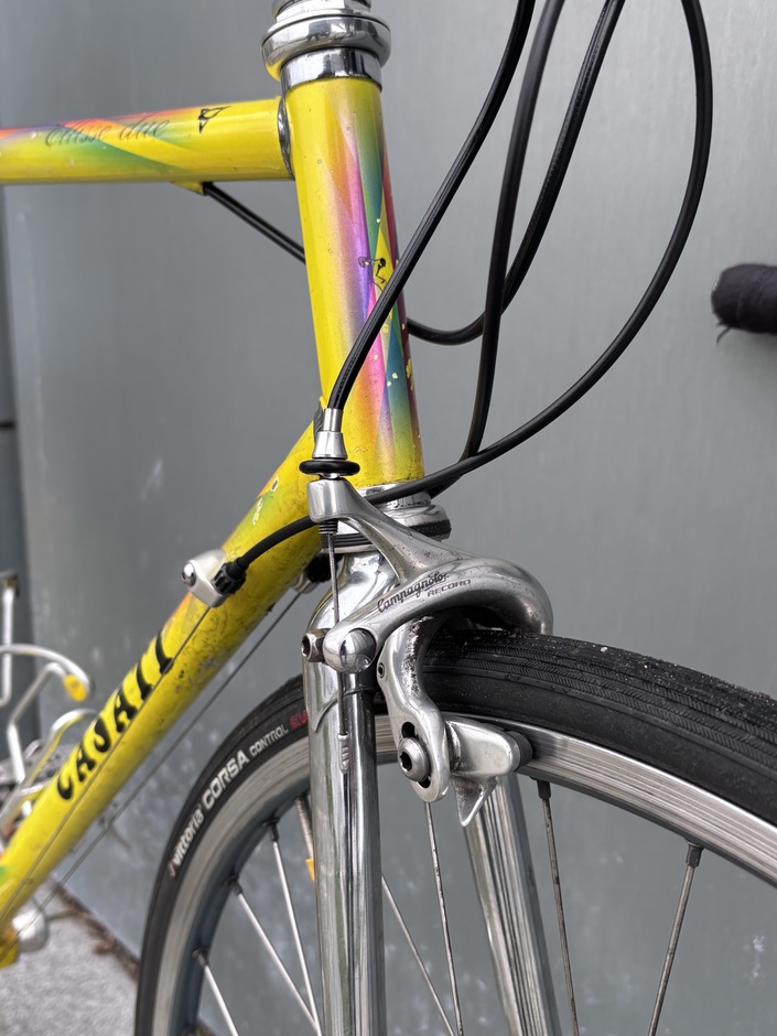 Found this as a fixie conversion on eBay and paid 150 for the frame and CK headset. Built back up with '98 Record parts, ride is süblime