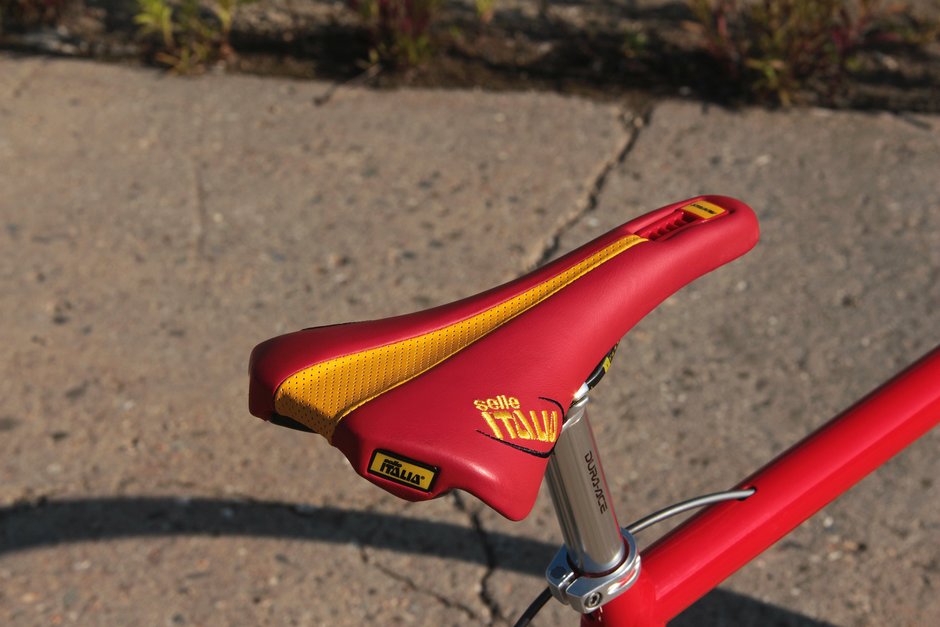 Selle Italia Novus red/yellow + Shimano Dura Ace SP-7410 seat post