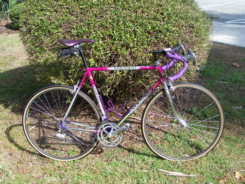 1996 Thron Super frame with Campangolo Mirage gruppo and Mavic ma4 rims and Chorus hubs. 3T bars and stem. I bought it 6 months ago with some rust and scratches which have been touched up. It is a solid ride but not a climber with a small 8 speed cassette.
