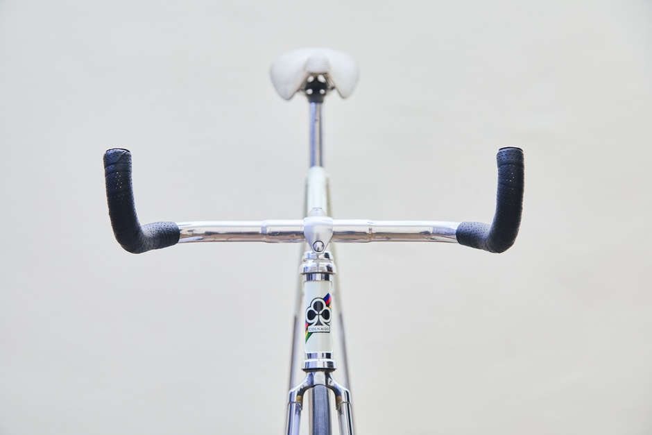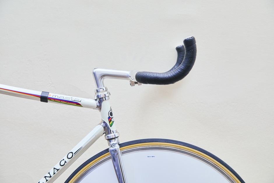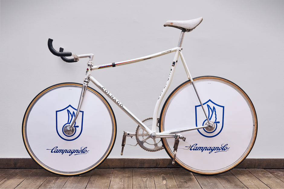 Colnago Master Crono Pista from the 1980s, 28/26 inch (frame size to follow) - Frame: Original paint - Fork: Original chrome plating - Rear wheel: Campagnolo Ghibli 28" - Front wheel: Campagnolo Ghibli 26" - Handlebars: Sold with Campagnolo handlebars - Campagnolo Super Record headset - Campagnolo Super Record bottom bracket - ​​Campagnolo Super Record crankset - Campagnolo Super Record seatpost - Campagnolo chainring (size to follow) with Wippermann chain - Campagnolo Super Record pedals - Cinelli stem - Cinelli Volare SLX