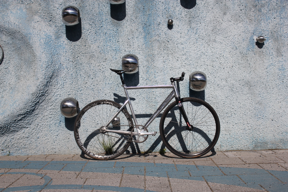 Columbus Pista Leggera in the summer. Trek Crockett's Disc custom doodle fork in the winter