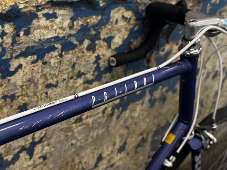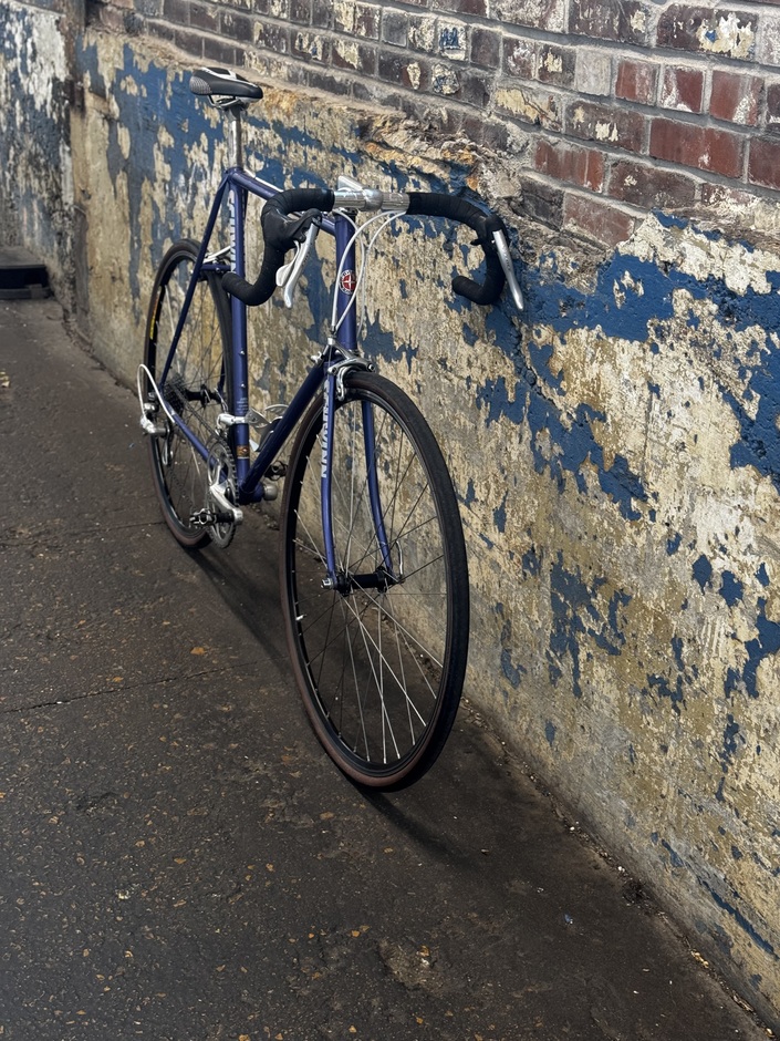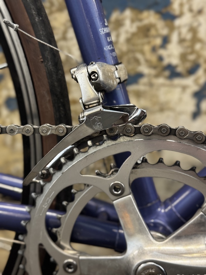 From the era when Schwinn bought out all of Columbus’ over stocked Tenax tubing, this Prelude appears. I gave it one last go at life and treated it to some old campy parts I had laying around as well some fresh cable housing. It was dubbed the Sch*t Missile and I enjoyed a few fun rides before I sold it on Marketplace. This is one I truly regret letting go of, super comfy, surprisingly quick, the patina’d look, and those sweet Campy shifts.