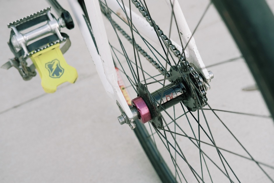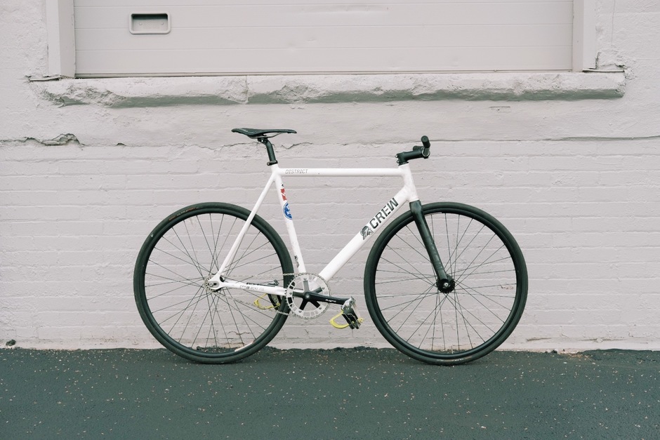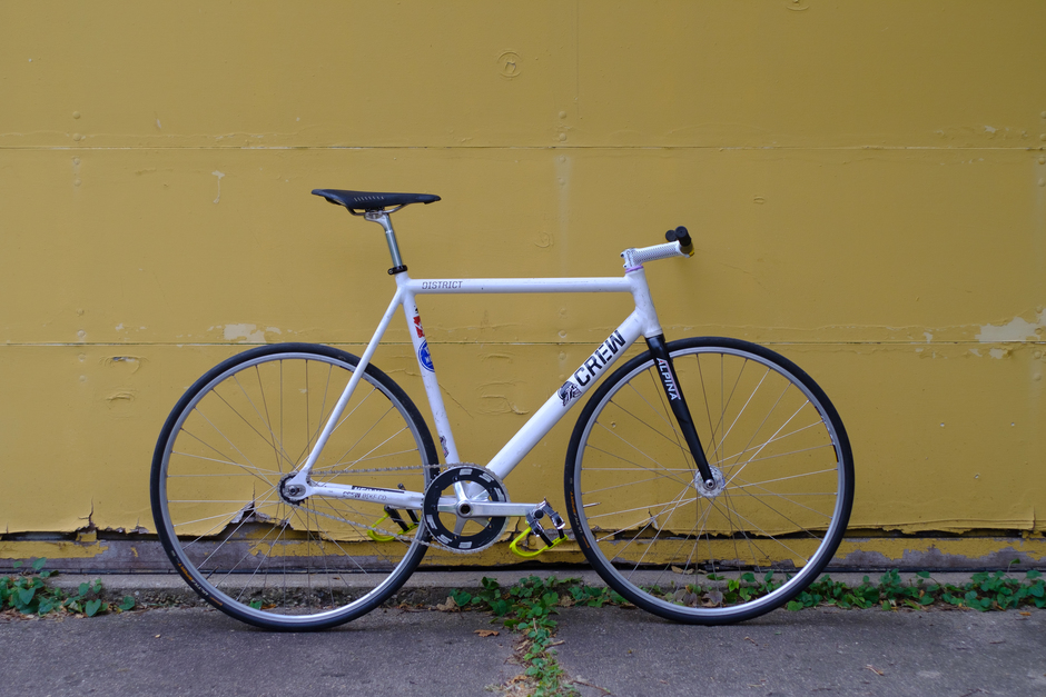 Probably the last one of these I’ll ever build, the only track bike parts I’ve kept are on this bike, all my favorites. This frame has been all over the country, been a work bike, a race bike, tracklocross, won some alley cats, crashed a lot, and has been very well loved.