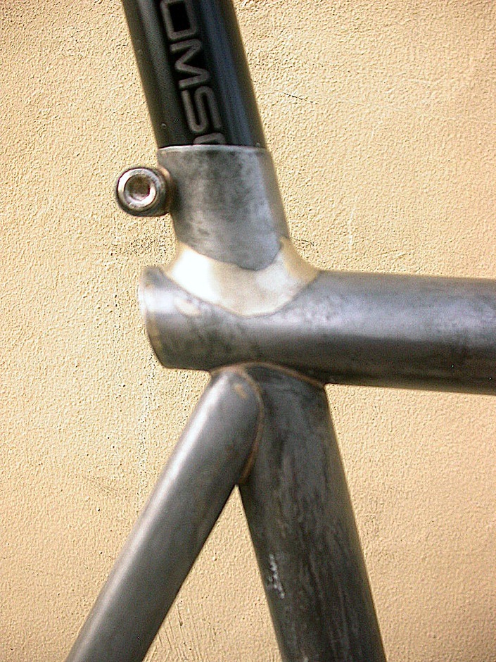 During the process of building this frame, we realized that because of the shape of the MAX toptube, the most convenient and practical way to go about with the seattube/toptube cluster is to cut a hole thru the toptube and insert the seattube thru it. Just like the GT way.