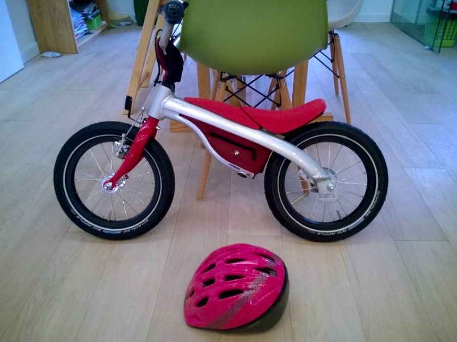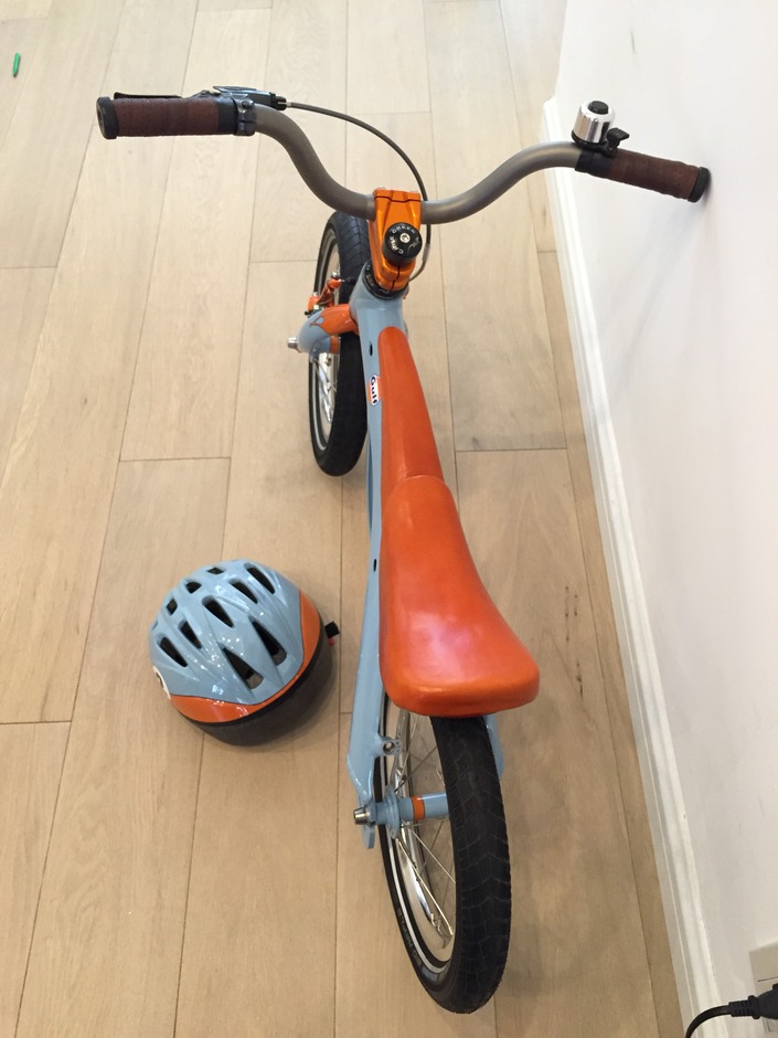 Custom BMW kids bike,rear coster brake tab removed,canti brake bosses added,internal brake line drillings,custom painted in Gulf racing scheme.