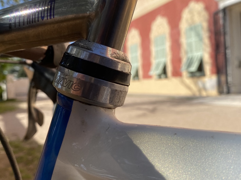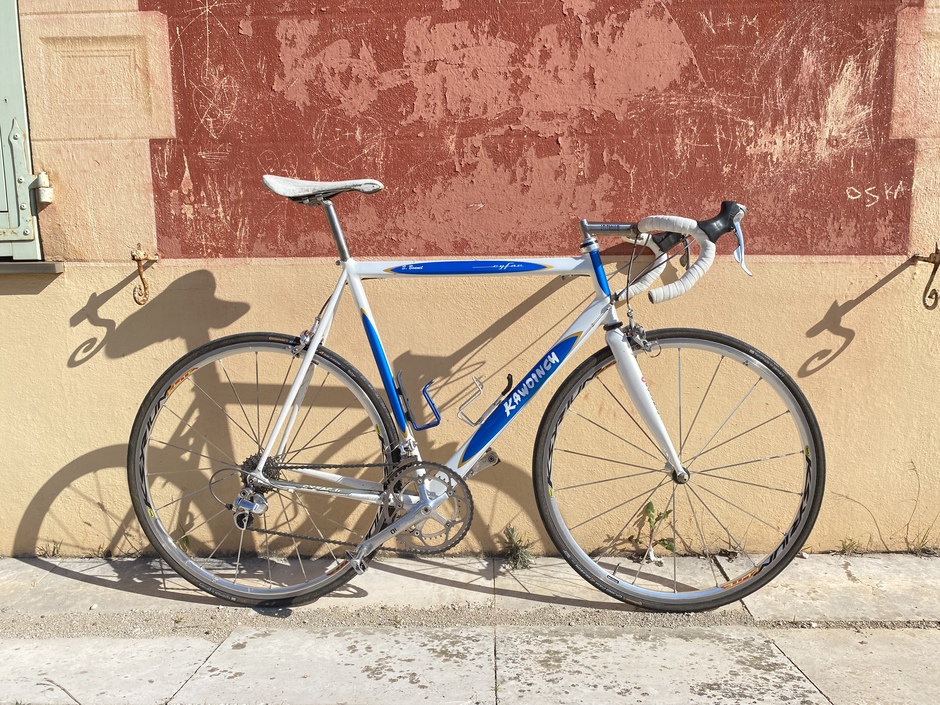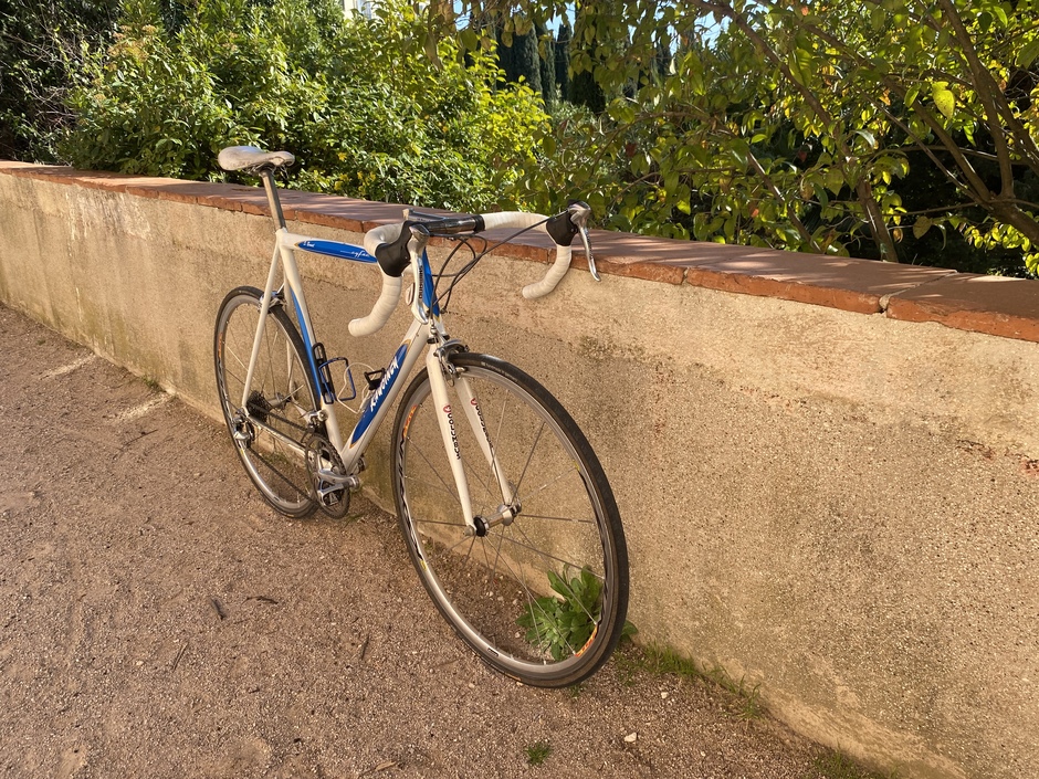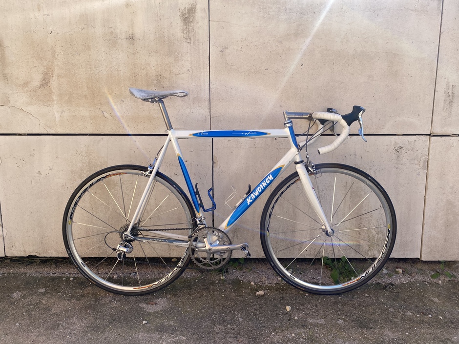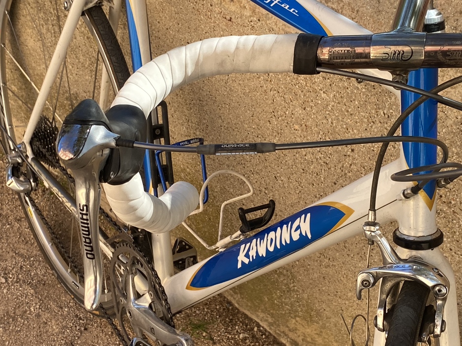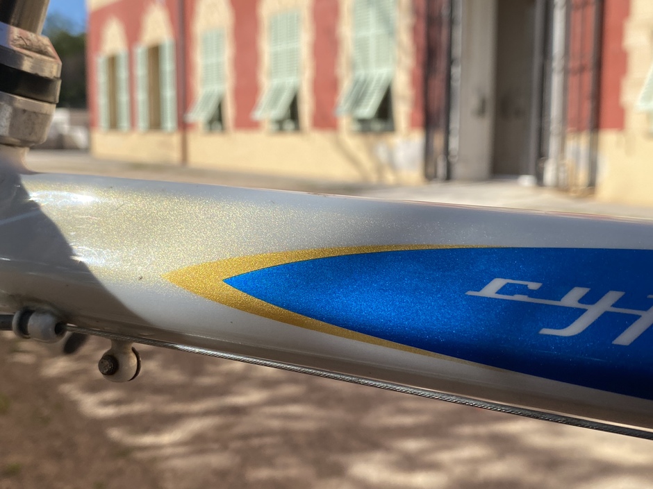 Bargain deal for this lightweight steel frame thanks to a stuck seatpost. Hope it rides ! The groupset missed a few parts but I managed to gather what it needed. Campy seatpost just because ! Kawoinch was a mechanic from the Tour de France. He sold some Cyfac frames to the local sportsmen ! Mine has "S. Bonnet" name on it, custom made for the pro rider William Bonnet's brother : Sebastien.