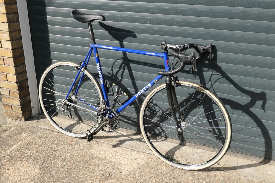 My first road bike build, originally built in 2009. Its on its 3rd incarnation now, having rinsed through 2 sets of wheels, snapped Campagnolo carbon seatpost (awful London roads) and snapped Cinelli Ram bars. Very comfortable long distance bike, I've done over 15000 miles on it. I have never seen another frame like this, it does have some nice lugs. I call him Al, Al Denti....see what I did there :)