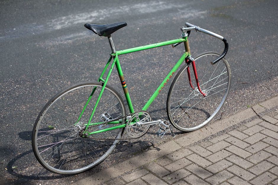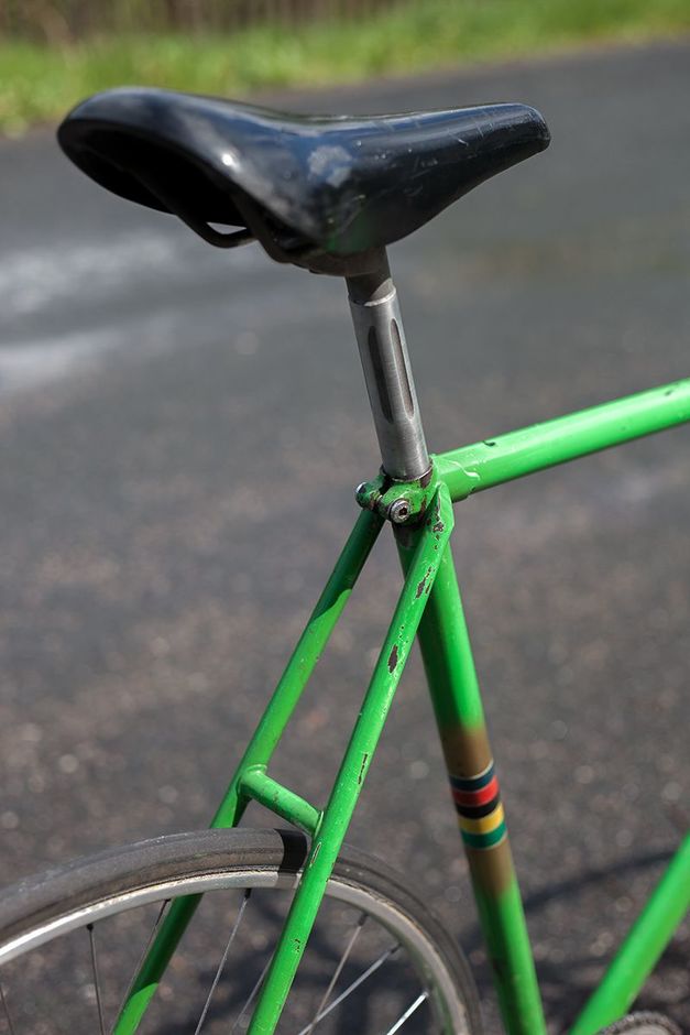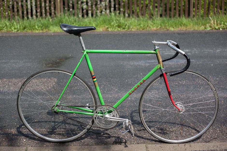 GDR made Track Bike. Based on a Diamant 35 704. Refinished (and maybe modified) by Willy Elsner, Zeuthen. Used in the Velodrom Heidenau/Sachs. Framesice 58cm