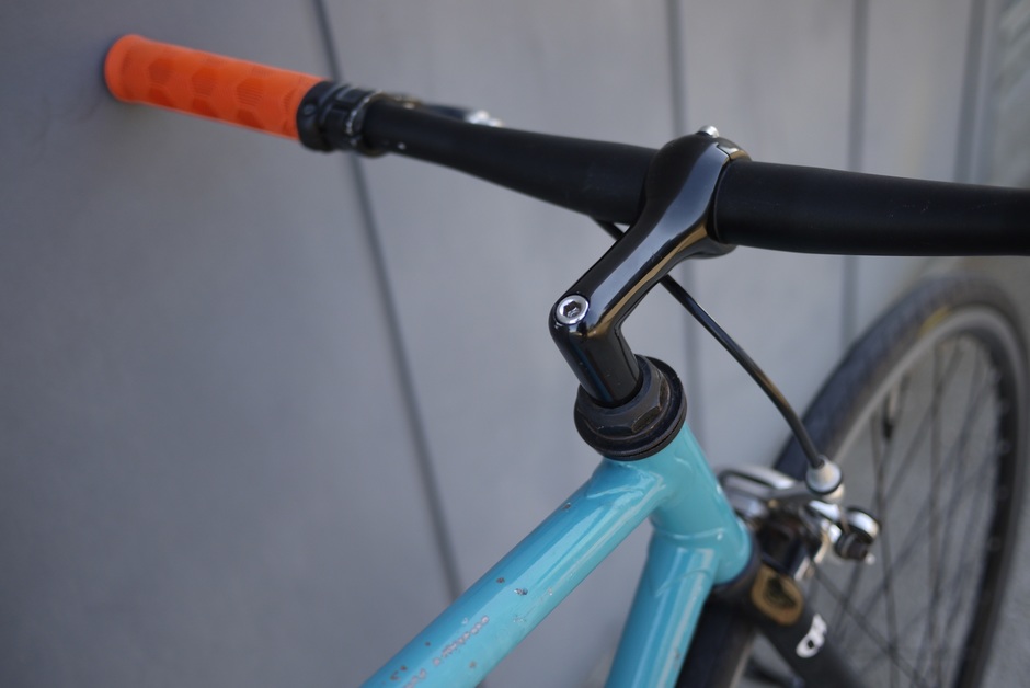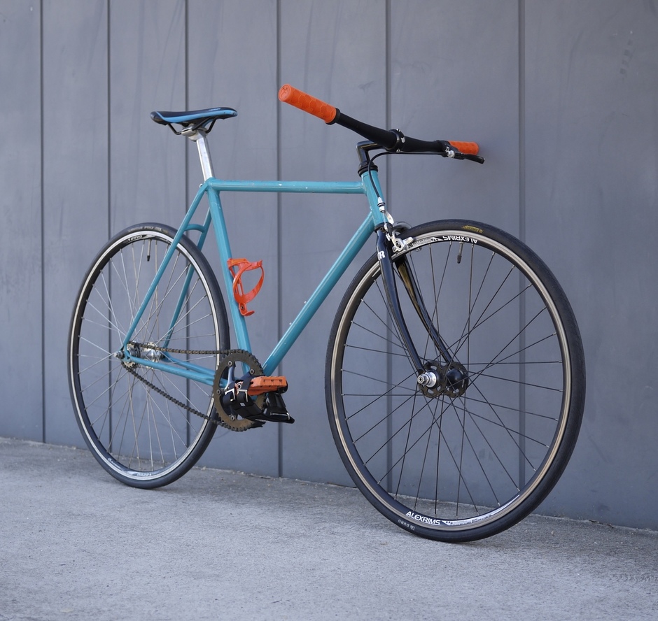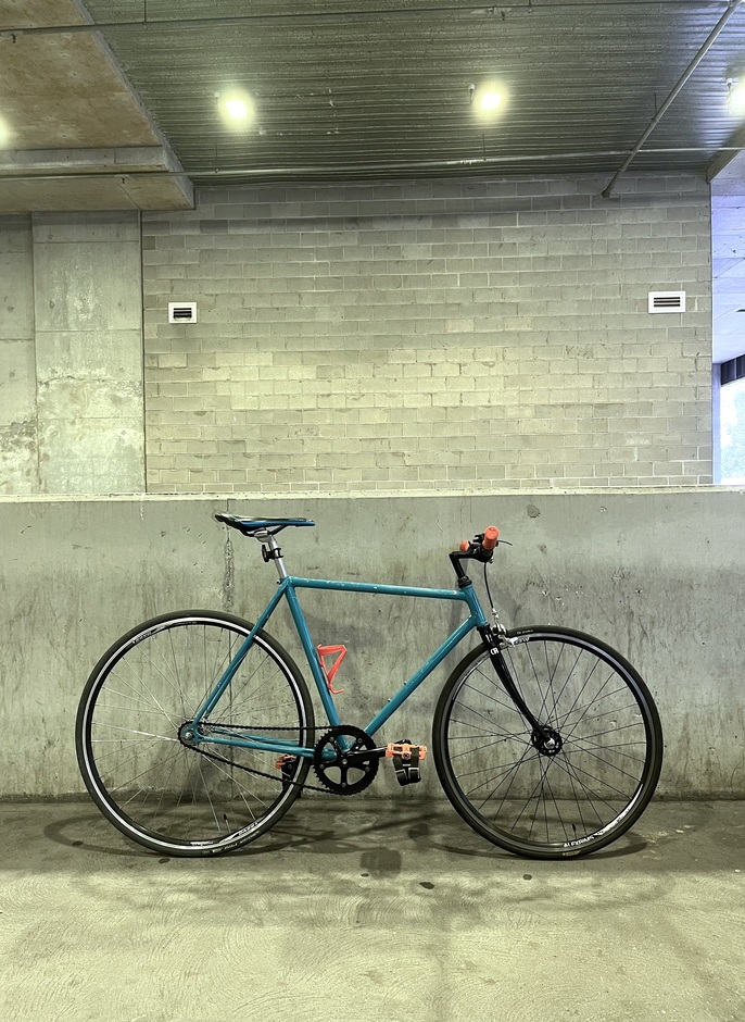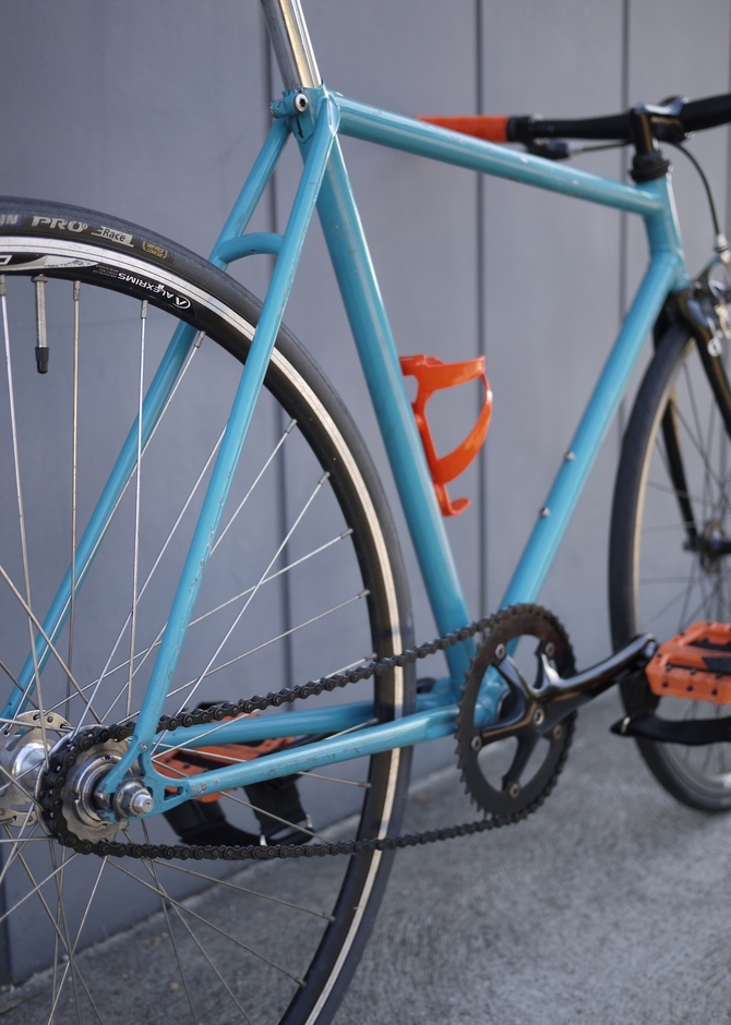 A garage sale find, this frame is a lovely oddity: it has lugs, track ends, big clearance, beautiful curved rear brake bridge yet no brake mount, and cable routing around the bottom bracket. For what, I'm not sure. Running a 'QR' threaded fork and a set of Alexrims DA22 staggered 650b 700c. Pretty rare to see skinny 650b's rolling around town these days in #Melbourne #fixedmindset