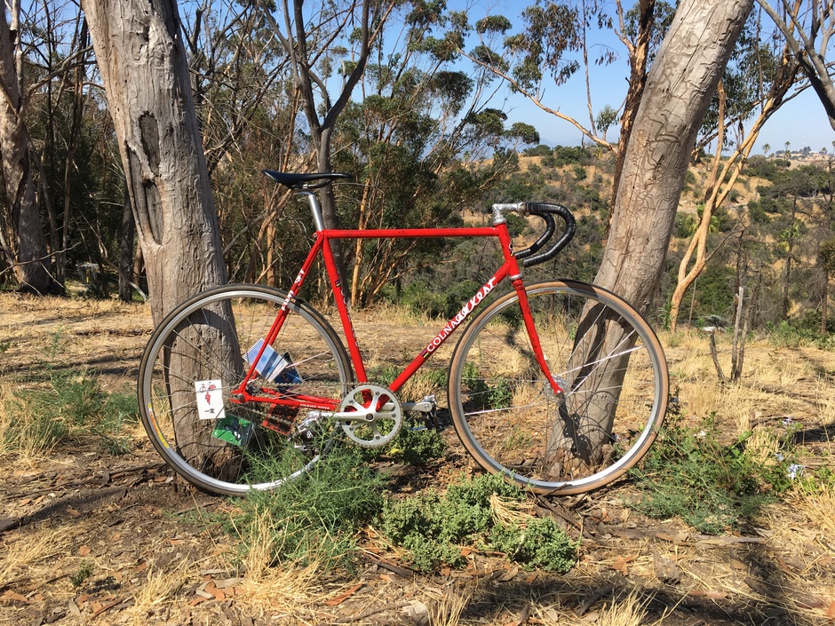 My daily beater. It’s a custom built steel frame from the ‘80s (Reynolds 531). At some point someone had it repainted and added Colnago transfers...
