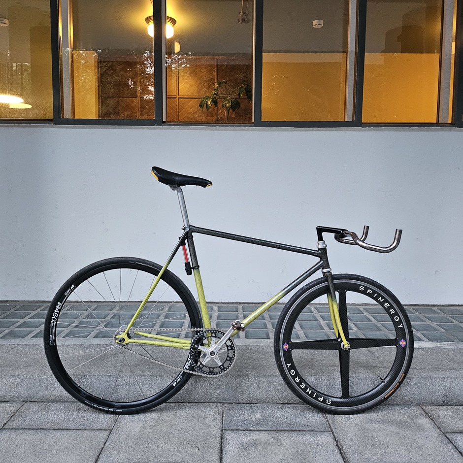 My beloved mysterious beast. Got it via a series of middlemen from Saint-Petersburg who originally imported it from a czech collector (you can find previous owner & couple more photos on here). As the rumor goes, frameset was built around 1982~84 at Favorit (Rokycany). It should have been a training bicycle for the athletes of Czech SSR for 1984 Olympic games (Los-Angeles), but because of the US sanctions & boycott of '80 Olympics in Moscow, as a sign of solidarity, czech team decided to abandon the '84 tournament. As a result, need for a bicycle disappeared and there began journey of the Favorit: around Rokycany, to Prague and to S-P where i bought it. Now it lives a happy fixie life in Moscow :) The frame is mysterious because of the lack of information. I couldn't narrow down the year of production closer than early-mid 80's, as no serial numbers or producer initials are visible. Also I don't know what steel is it made of- there is equal chance for water pipes from the Rokycany factory or 753 Reynolds, as the top of the line Favorites (Koza) were made out of. One way or another, I am very happy with my purchase. Even after nearly a year of exhausting build up from bare bones and a battle with odd standards (26,2 seatpost, conical from the inside steerer tube with prehistorical (German?) thread on it..). It is such a cool ride with unique history and aesthetic