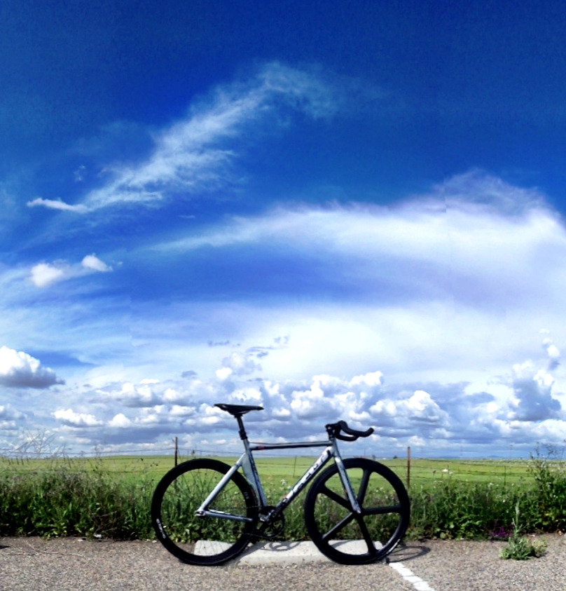Finally the bike is set-up for more comfort! Had to get a new fork since the old one had micro cracks allover the drop outs. The new gearing is fantastic just enough to spin and still be able to go fast when I want it to.