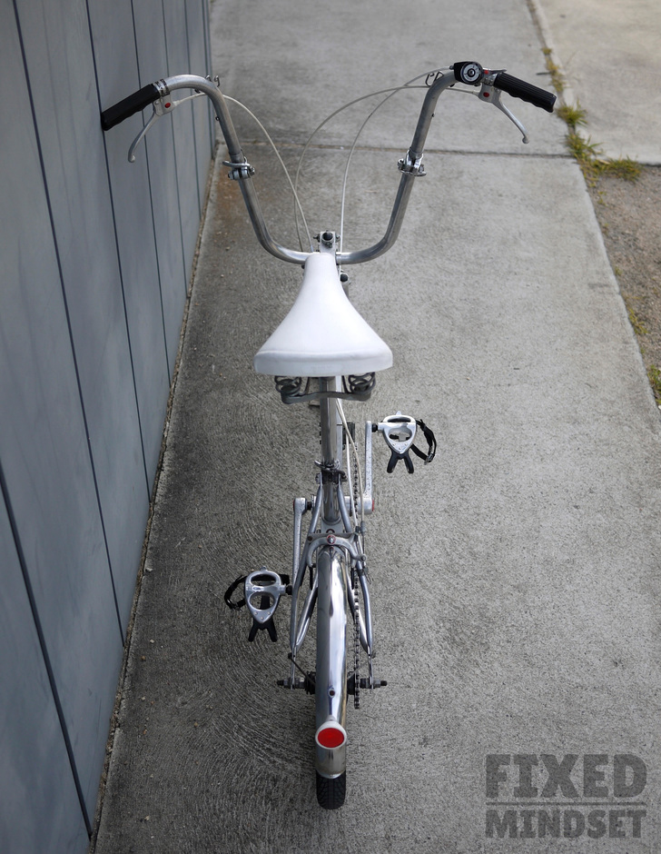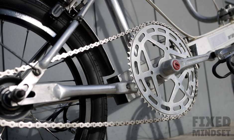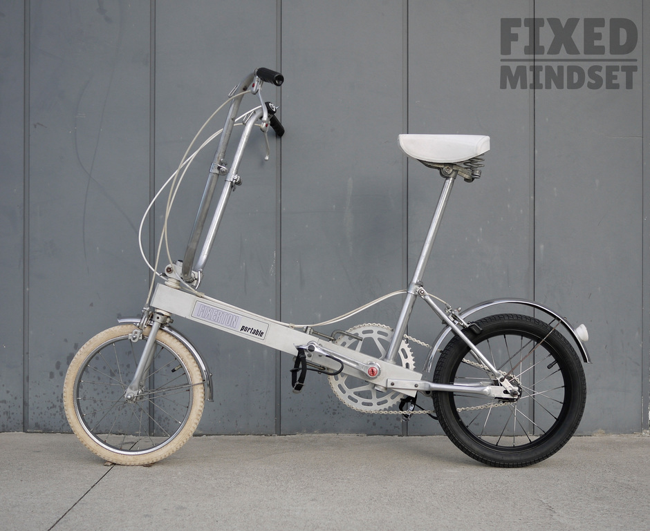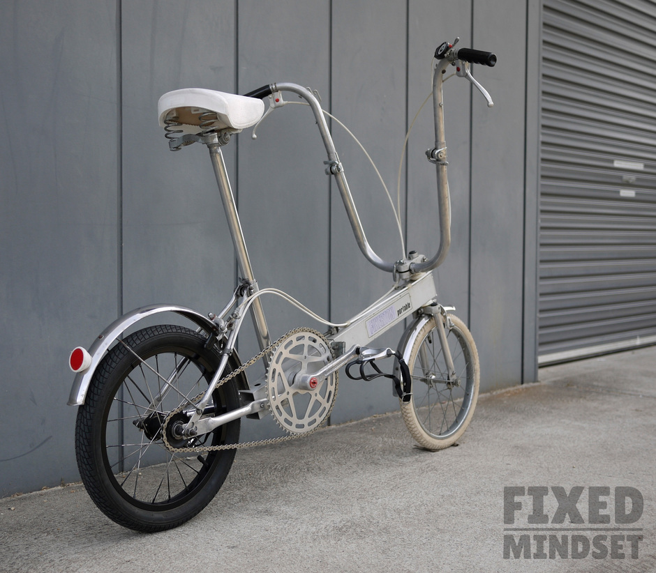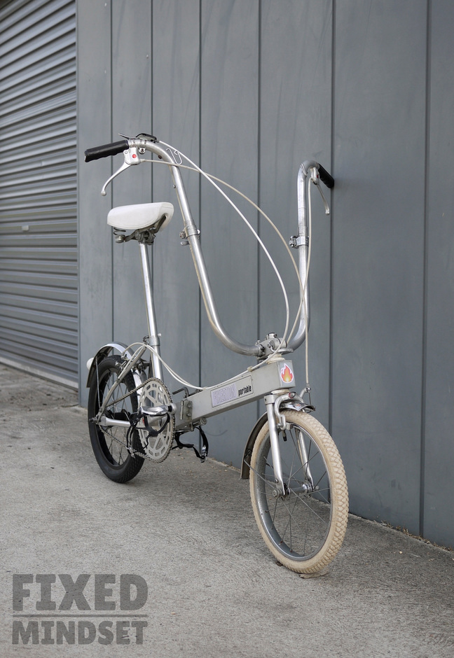 Fixerton: a Bickerton Portable fixed gear. Sporting a Sugino Maxy 57 tooth crankset, a mint Sugino cup and cone bottom bracket and even the original 14x1β " Michelin front tyre, made in England. This is a late 70's all aluminium folding frame manufactured right here in Melbourne with license from the British inventor, Harry Bickerton. All original except for the fixed rear wheel. First look https://youtube.com/shorts/3P0rMnO6ThY First ride https://www.youtube.com/shorts/jI2XnLnraVo #fixedmindset