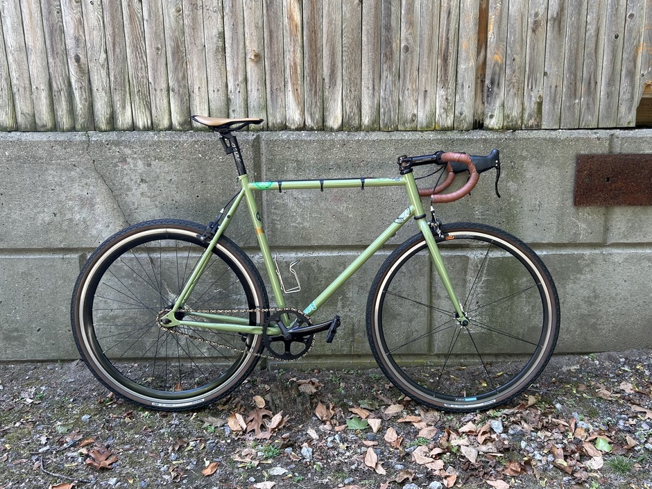 Drop bar conversion. Front hub completely fell apart after a few months, decided to just throw an old road wheel with a QR in there. Update Sept 2022: Syncros Belcarra saddle, Panaracer GravelKing SK 35's