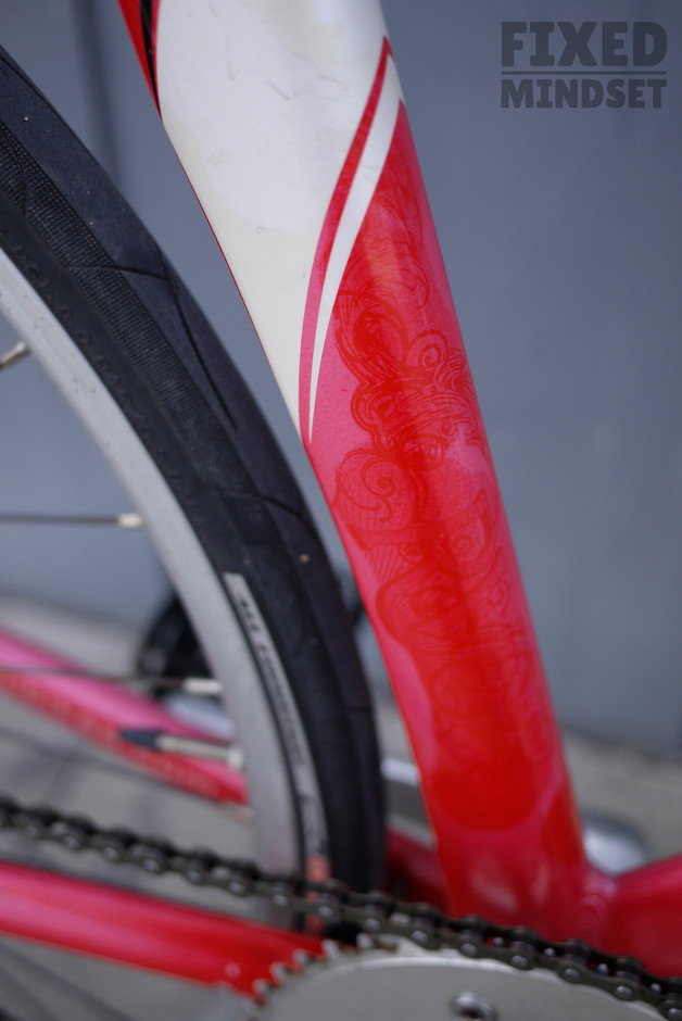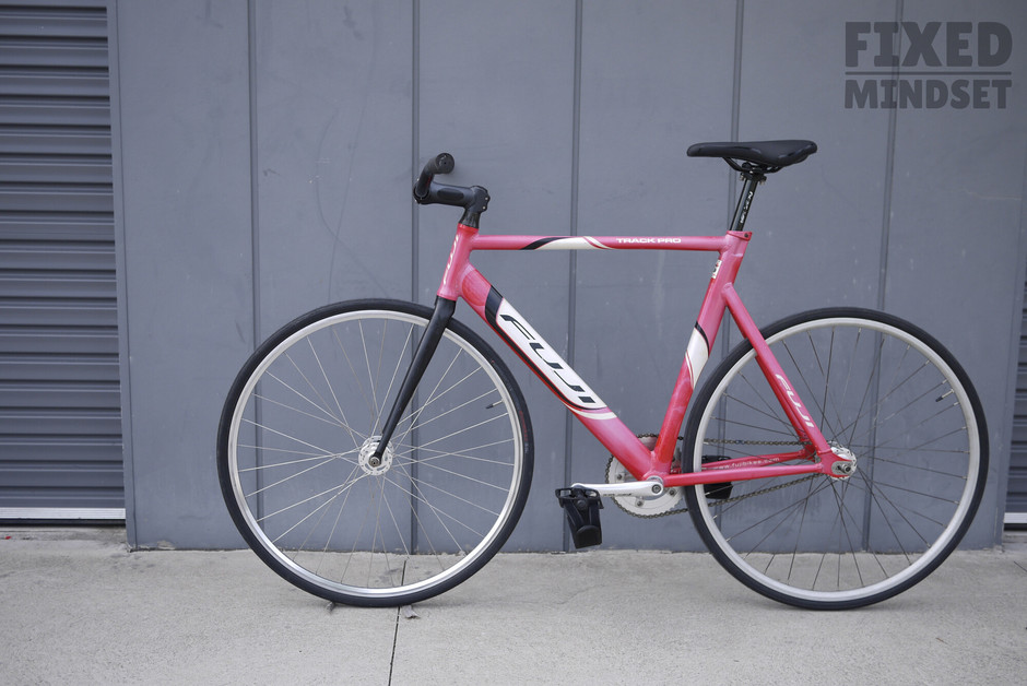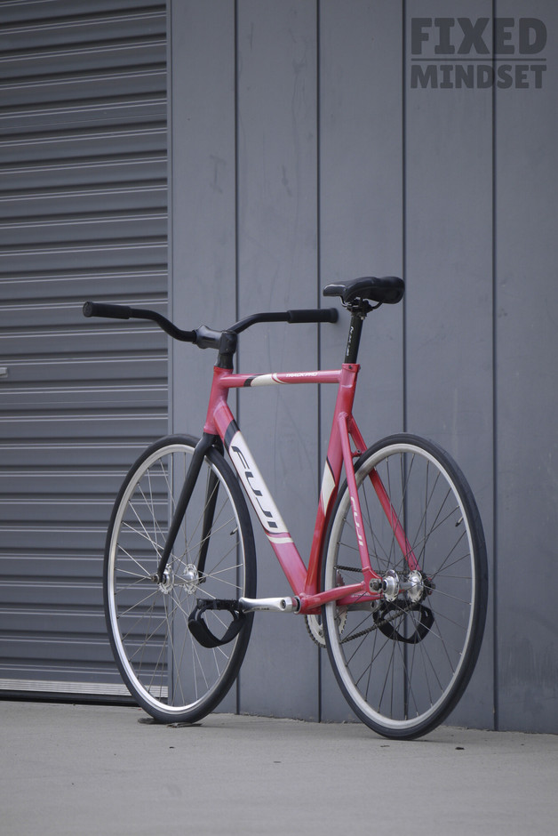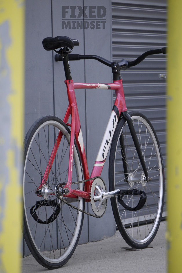 A quick parts bin build. I'm pretty sure it wasn't pink originally haha. This frame has seen life but it's straight, light, and super fun. Enjoy #fixedmindset