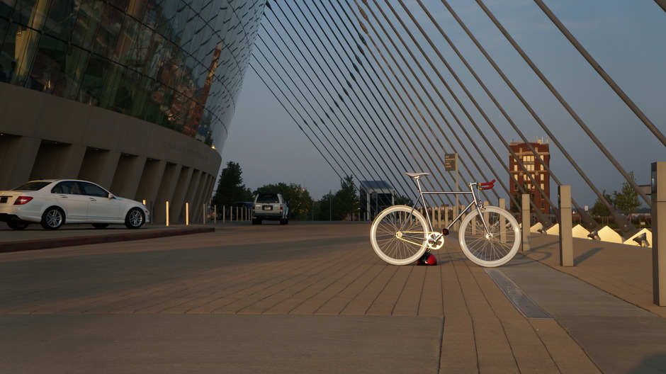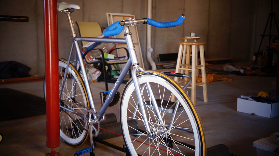 This is my first fixed gear bike I got in a trade for my R400 back in August of '12. Although most pictures I have are from when I first got it with the brakes on, those have been gone.