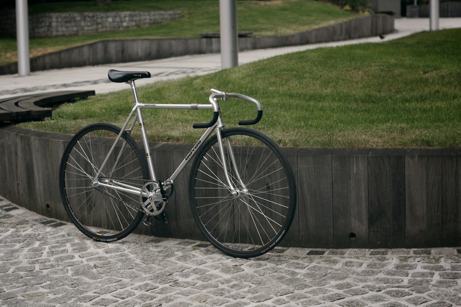 This one has the double butted Tange tubing and Suntour track-ends. NABY engraved on the seatstay means Butteryfly which is presumably the nickname of the rider it was built for.