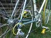 Relegated to trainer duty since 84,this Gitane has reappeared on the road again in the summer of 2010.Smacked into a deer big time way back it now has the opportunity to do it again wearing different colors.