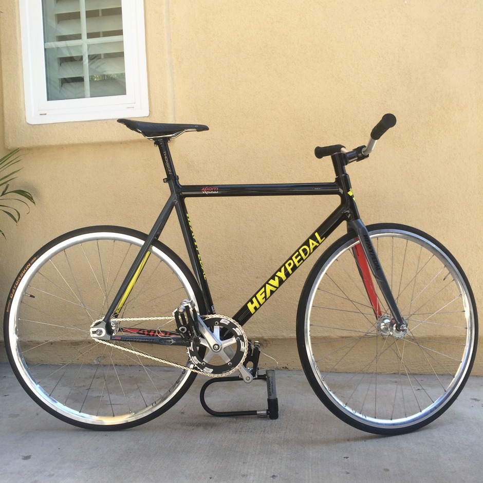So I have set up this bike with so many different components but right now it's set up as my work bike. I usually run Shimano road pedals and Nitto drops but I'm not racing super hard on the track this season. Sometimes I run Archetypes to Grand Compes and Time ATAC pedals