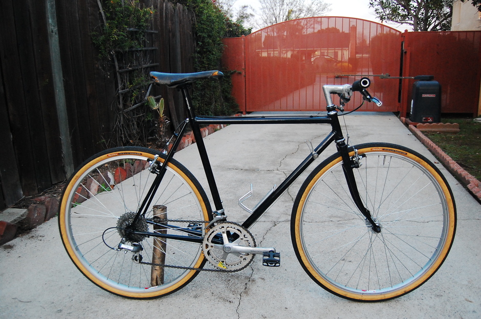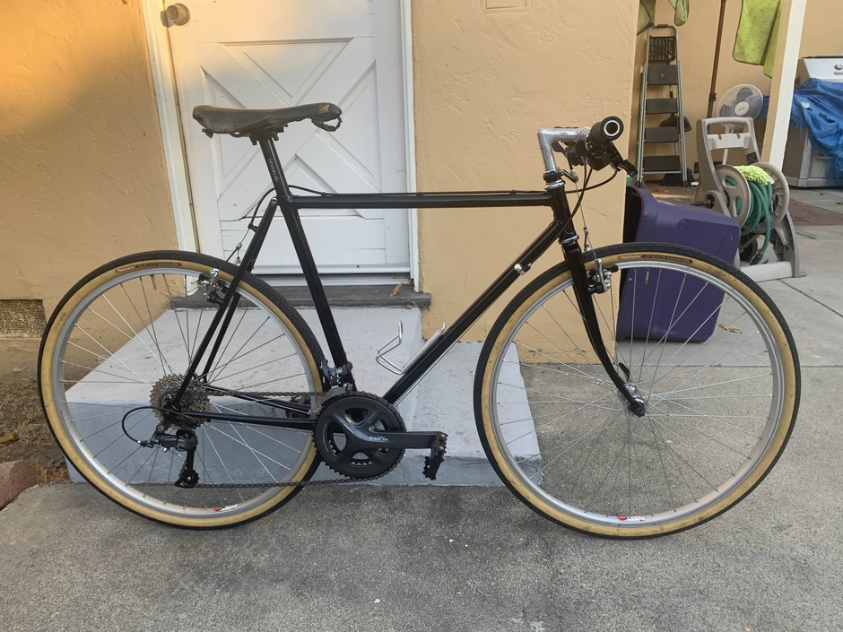 Hugh Suter Enochs (December 27, 1941 – September 28, 2023) was a frame builder that lived in the Bay Area. He had worked at Velo Sports in Berkeley, where I think my friend D.R. worked at, and I'd like to imagine that it was that connection that he ended up with this frameset, which he bequeathed to me when he graduated from Cal after my freshman year. My limited results after researching on Google lead me to assume this is either his 94th frameset (serial number 94), or he made the frameset in 1994 (though it would've been stamped with a "'94" or straight up "1994", so who knows), or perhaps it was his 94th frameset made in 1994, or the 94th frameset was coincidentally completed in 1994... Mr. Enochs seemed to have made a lot of custom framesets for people. This one still has the original black paint with silver flakes in it. One word kept resurfacing: "Jevelot", which could be the name of the frameset, the shop, or the brand Mr. Enochs sold the framesets under. Not sure if it should go in the title, and despite sound like a biblical name, appears to be a made-up word.