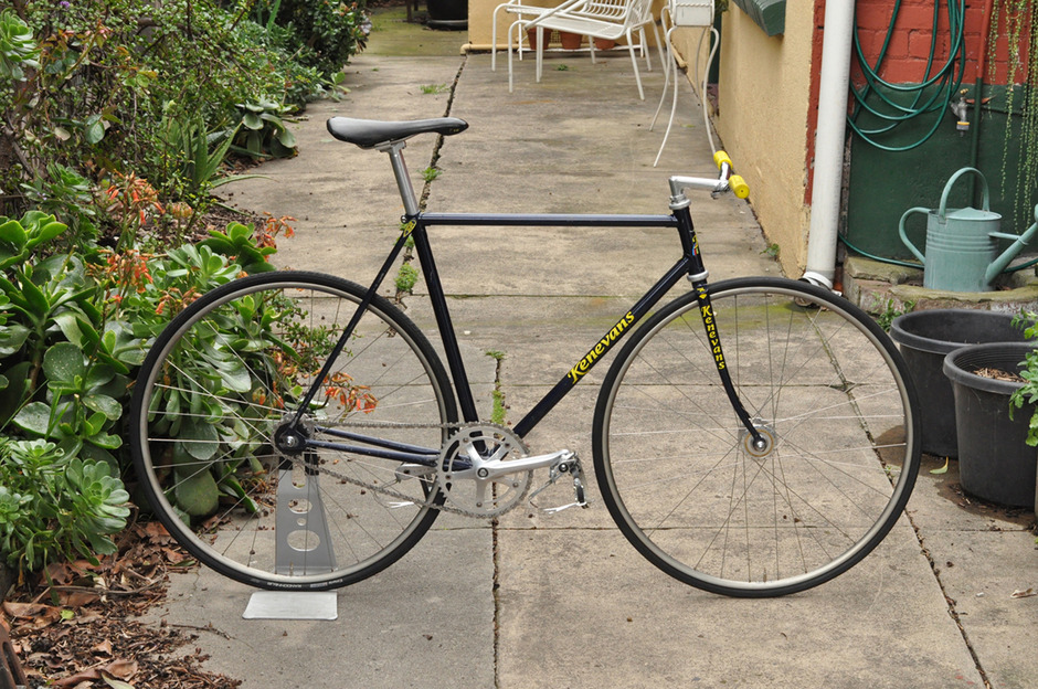 australian made ken evans track frame, w pantographed fork crown and seat stays