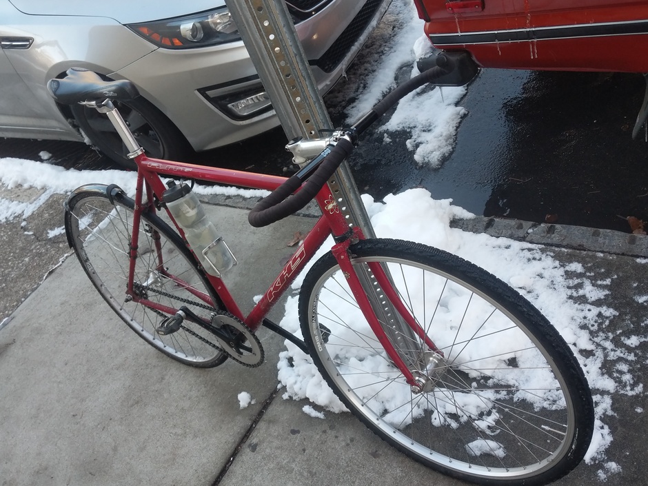 Filed fork to fit a 35 cross tire i had laying around. Handles snow and ice well enough for me.