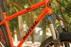 Steel frames look so much better than alloy.I love this bike.The orange frame with the blue and white is a color scheme I always thought would look great and it does.How does it ride,fantastic I bet.Bravo dude,nice.