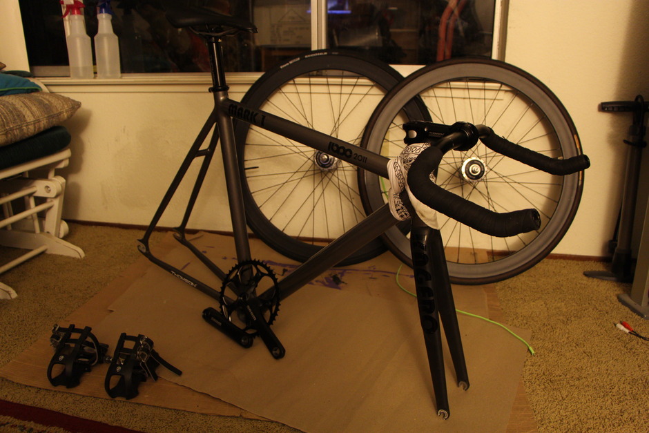 This is the first bike I have ever build, that's the reason why I call it Mark 1. This is my third fixed gear I have had in the last year, they were Pure Fix bikes and not gonna lie they were pretty good but I sold them. Took me a year to get money and gather parts. This bike means a lot to me and not gonna lie I wanted to make my bike look close to Patrick Thames Kagero because I love his build. I am planning in the future to maybe get a Velocity A23 or a H Plus Son Archetype 28h laced to Novatec with Phil Wood bearings for the back and a carbon clincher 60mm in the front. Also hoping to find a Sram Omnium crankset for a good deal one day and this bike will be perfect.
